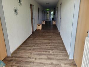 So sieht eine unserer Etagen aus: Hinter den Türen verbergen sich 8 - 9 Schlafzimmer mit Bad und eine Küche.